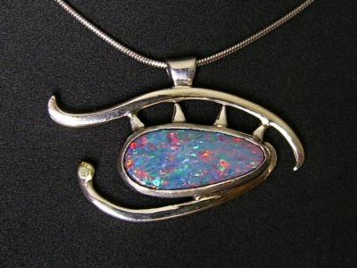 Opal Doublet set in 925 Silver / 18K Gold accent With 20″ 1.1mm snake chain 22x33mm