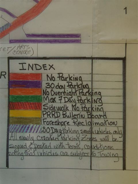 11. From the SW corner of PRRD lot (info kiosk lot) to Pat Forbes' property line: allow for 30 day parking.